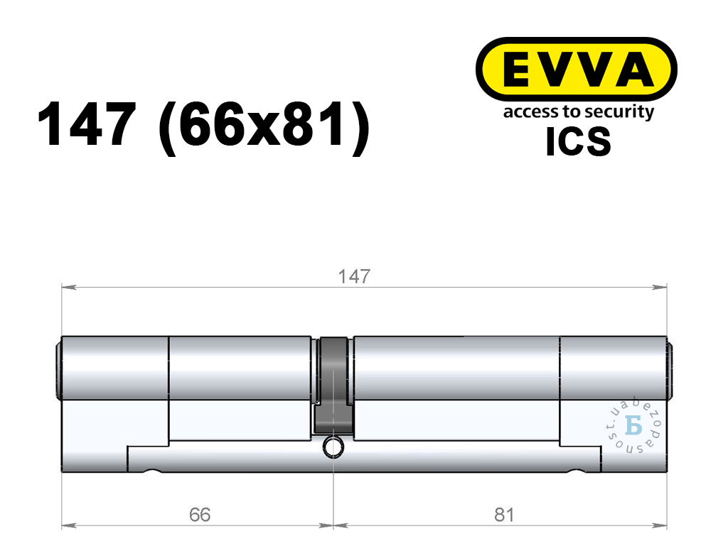 Циліндр EVVA ICS 147 мм (66x81), ключ-ключ