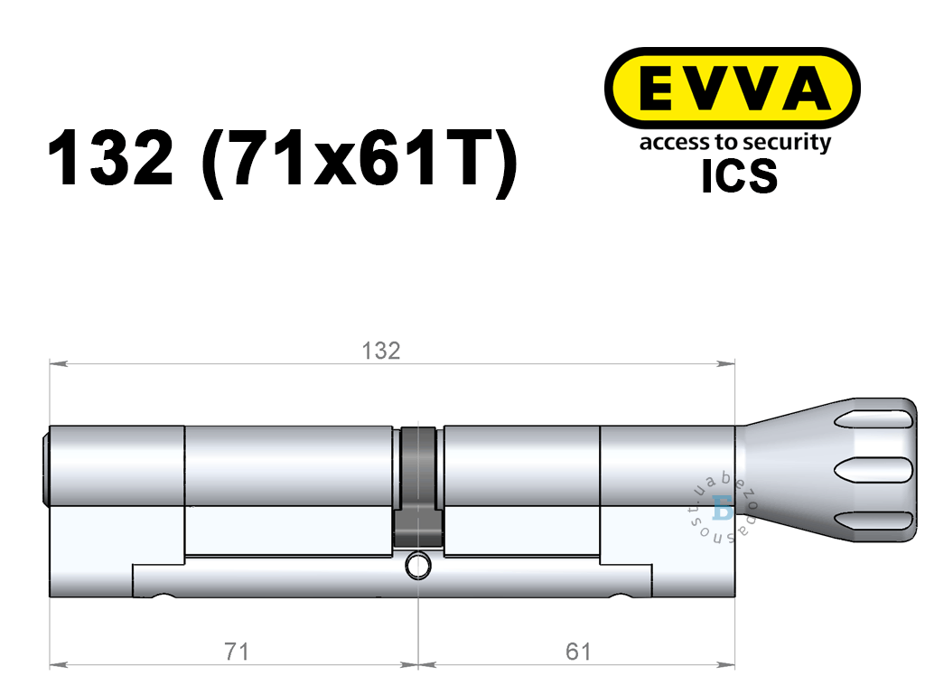 Цилиндр EVVA ICS 132 мм (71x61T), с тумблером