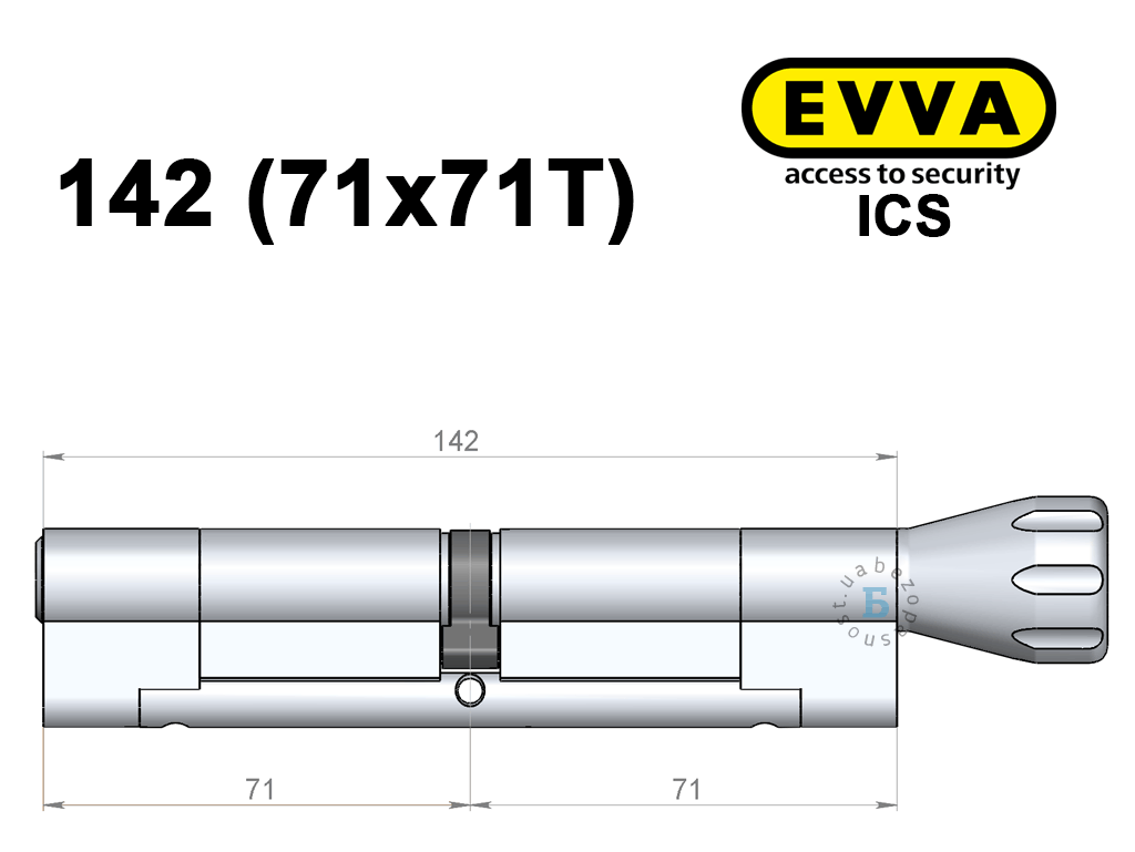Цилиндр EVVA ICS 142 мм (71x71T), с тумблером