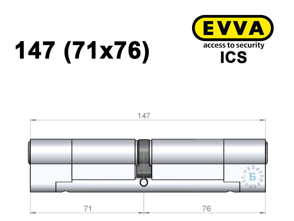 Циліндр EVVA ICS 147 мм (71x76), ключ-ключ