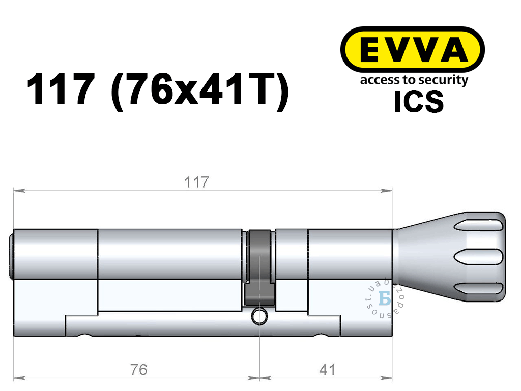 Циліндр EVVA ICS 117 мм (76x41T), з тумблером
