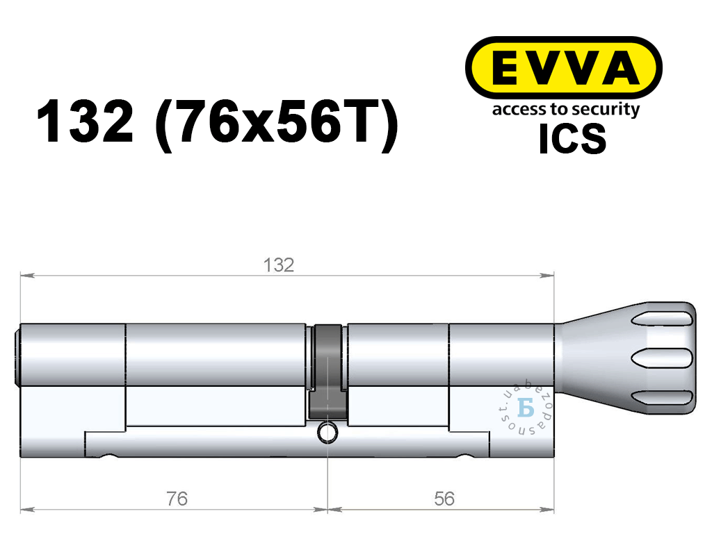 Циліндр EVVA ICS 132 мм (76x56T), з тумблером