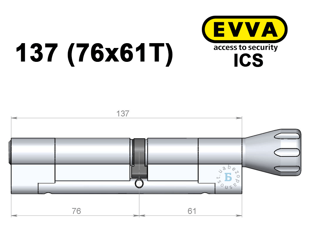 Циліндр EVVA ICS 137 мм (76x61T), з тумблером