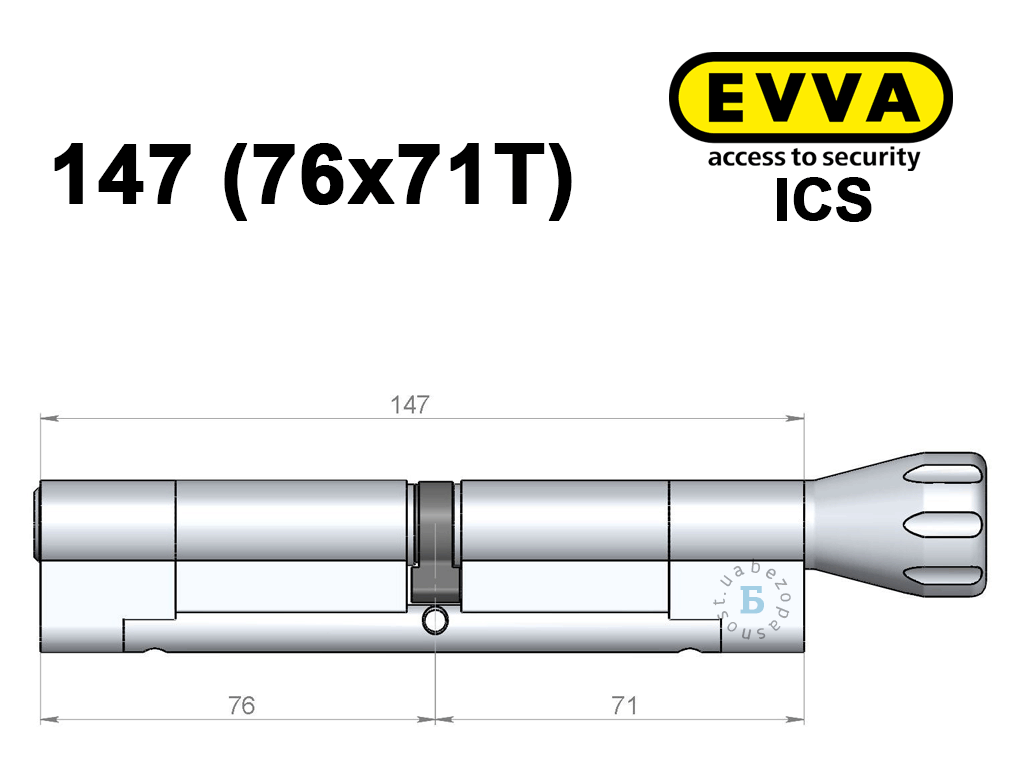 Циліндр EVVA ICS 147 мм (76x71T), з тумблером