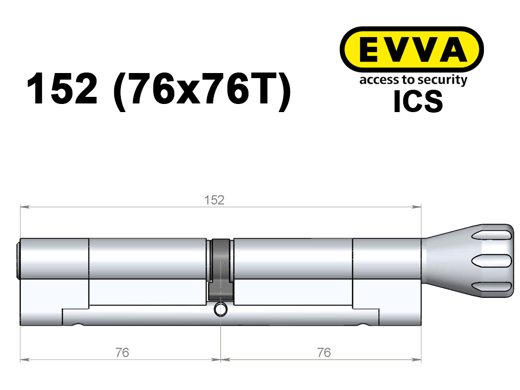 Цилиндр EVVA ICS 152 мм (76x76T), с тумблером