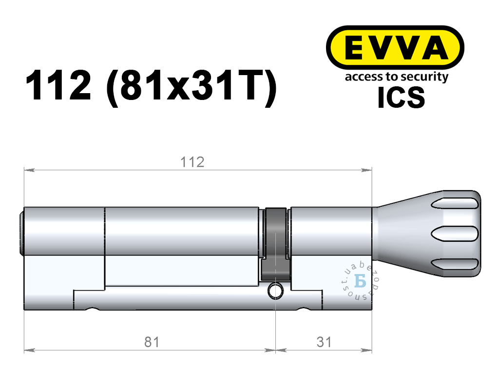 Циліндр EVVA ICS 112 мм (81x31T), з тумблером