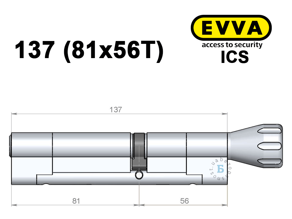 Цилиндр EVVA ICS 137 мм (81x56T), с тумблером