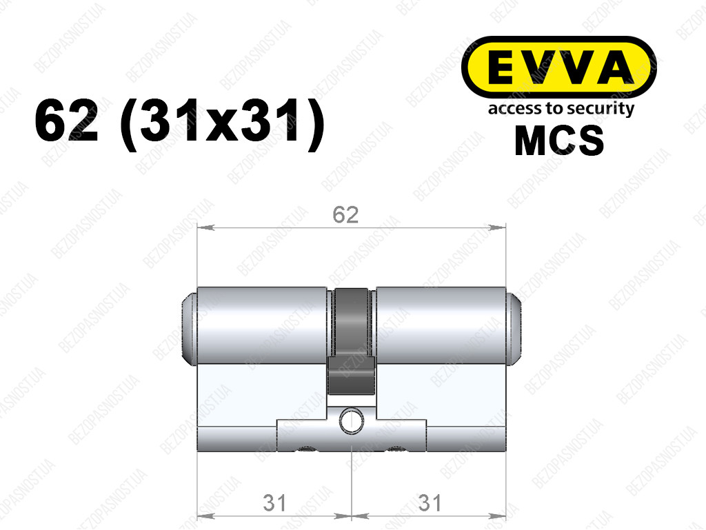 Цилиндр EVVA MCS 62 мм (31x31), ключ-ключ
