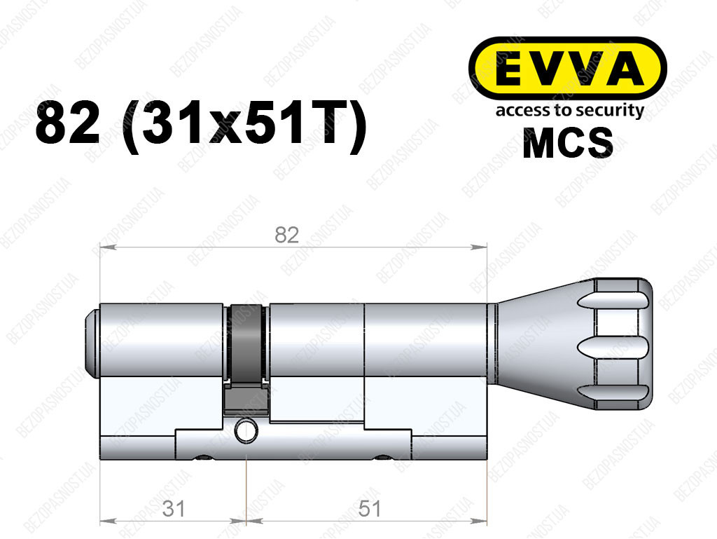 Циліндр EVVA MCS 82 мм (31x51T), з тумблером