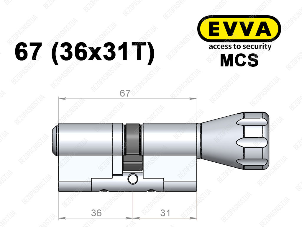 Цилиндр EVVA MCS 67 мм (36x31T), с тумблером