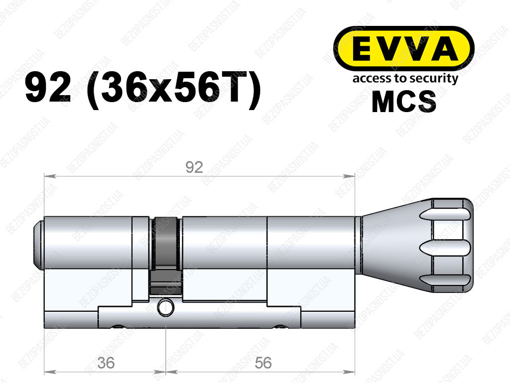 Цилиндр EVVA MCS 92 мм (36x56T), с тумблером