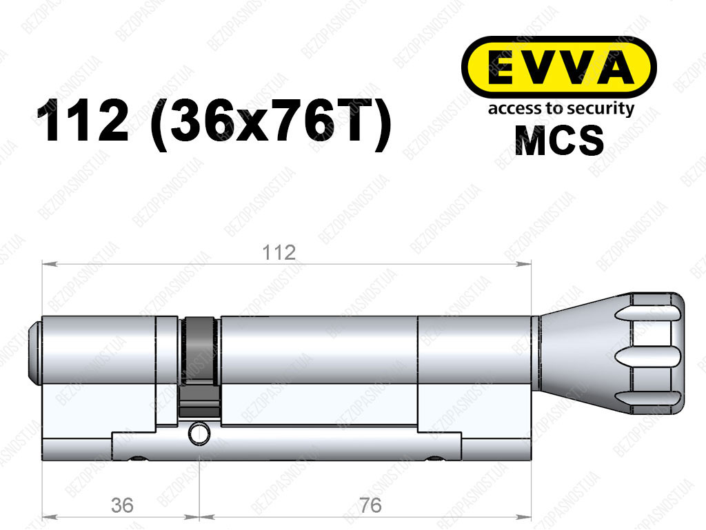 Цилиндр EVVA MCS 112 мм (36x76T), с тумблером