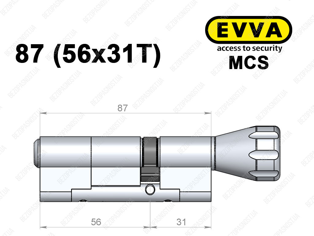 Цилиндр EVVA MCS 87 мм (56x31T), с тумблером