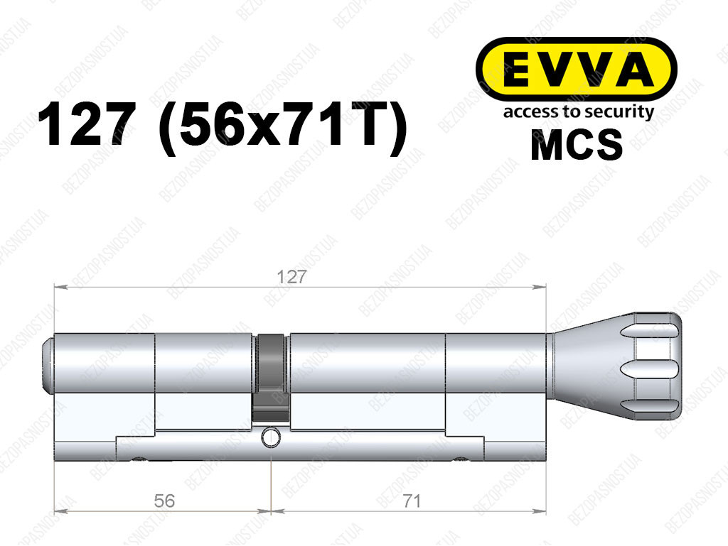 Цилиндр EVVA MCS 127 мм (56x71T), с тумблером