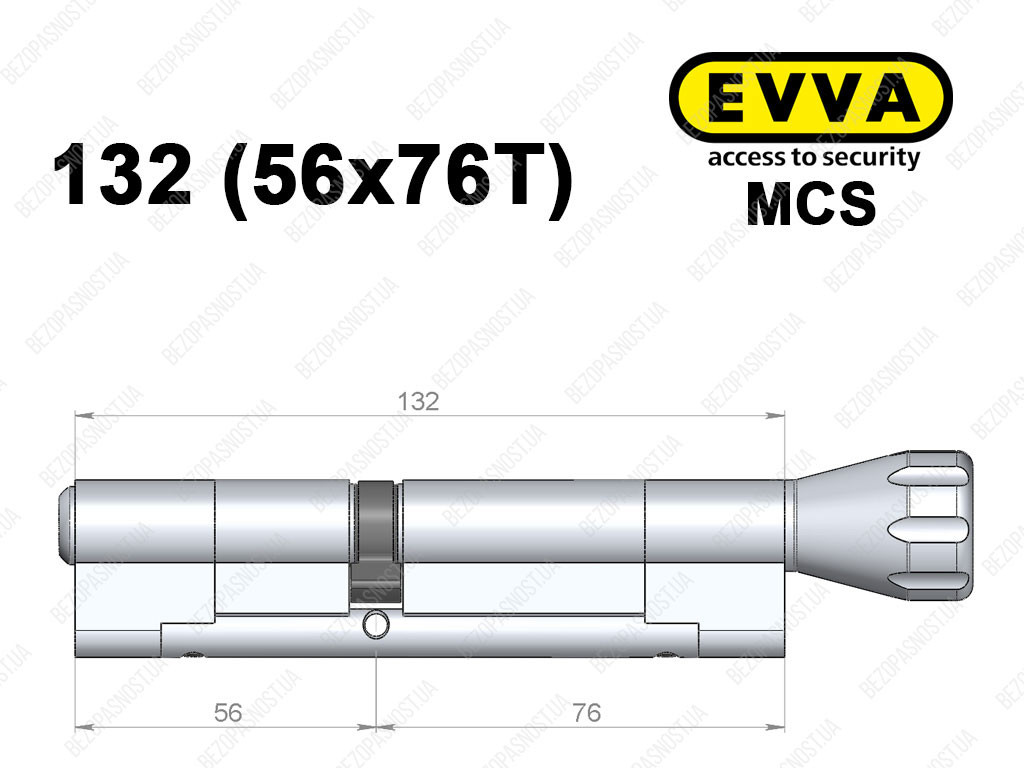 Цилиндр EVVA MCS 132 мм (56x76T), с тумблером