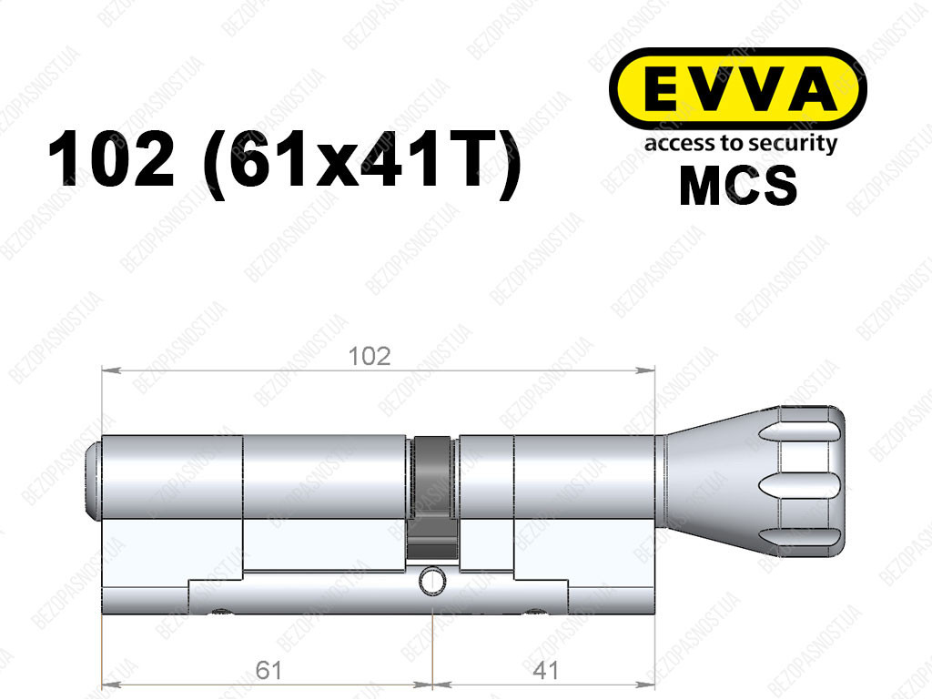Цилиндр EVVA MCS 102 мм (61x41T), с тумблером