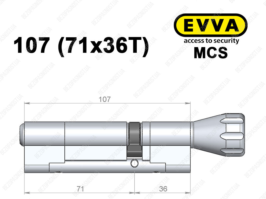 Цилиндр EVVA MCS 107 мм (71x36T), с тумблером