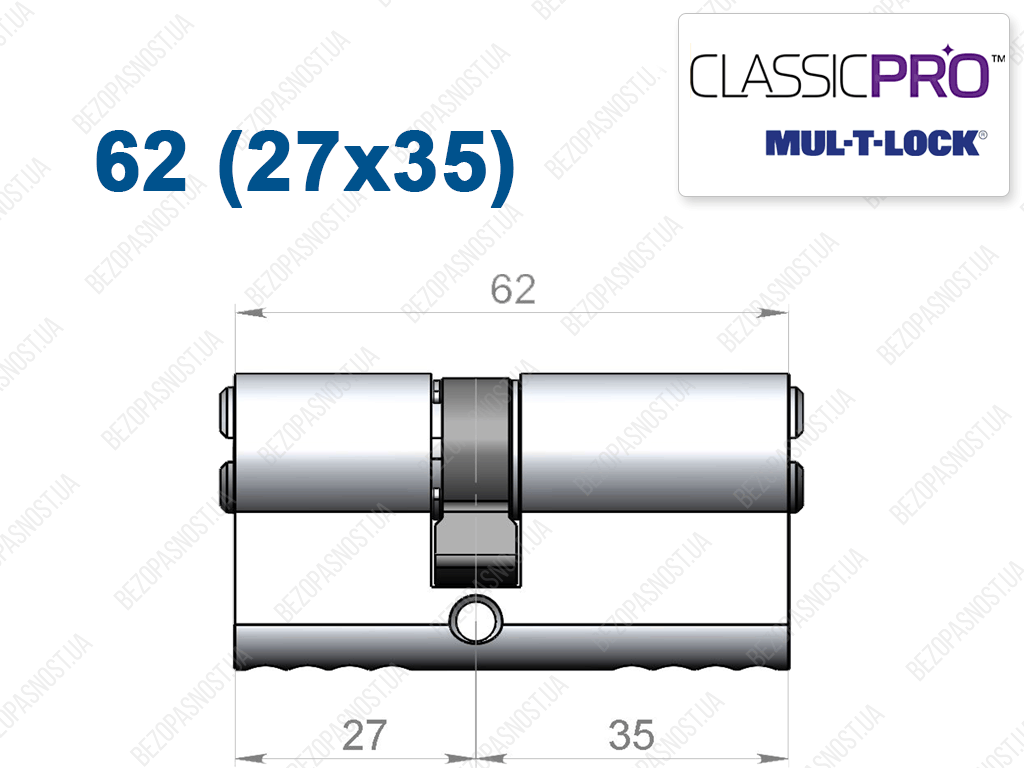 Цилиндр Mul-T-Lock Classic Pro ключ-ключ 62 мм (27x35)
