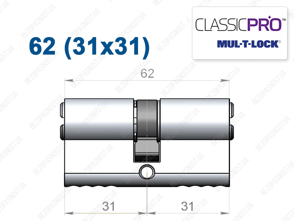 Цилиндр Mul-T-Lock Classic Pro ключ-ключ 62 мм (31x31)