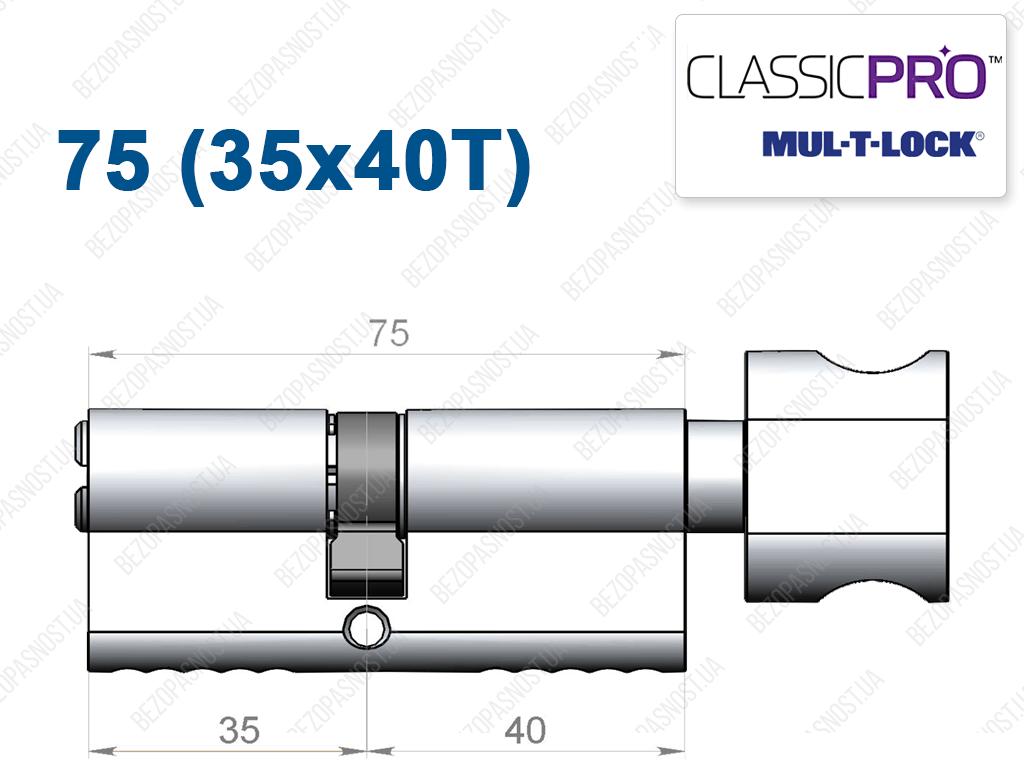 Циліндр Mul-T-Lock Classic Pro ключ-тумблер 75 мм (35x40T)