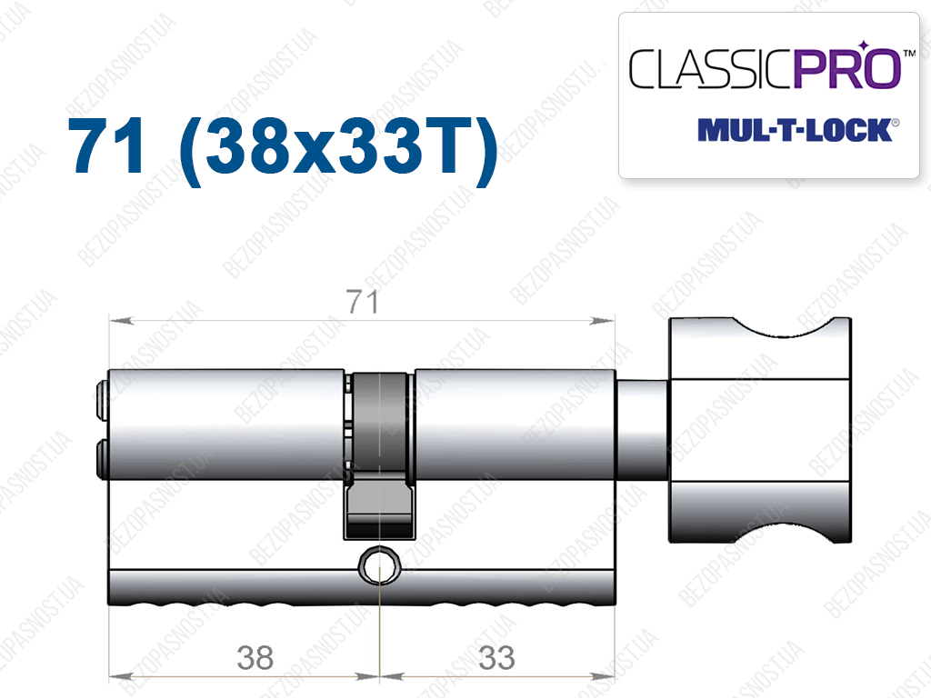 Циліндр Mul-T-Lock Classic Pro ключ-тумблер 71 мм (38x33T)