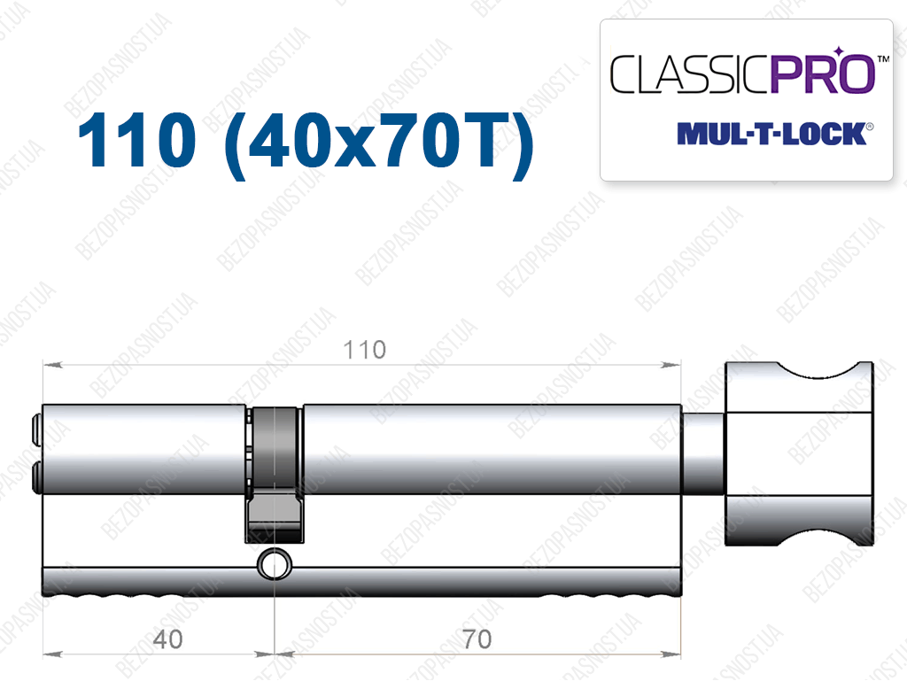 Цилиндр Mul-T-Lock Classic Pro ключ-тумблер 110 мм (40x70T)