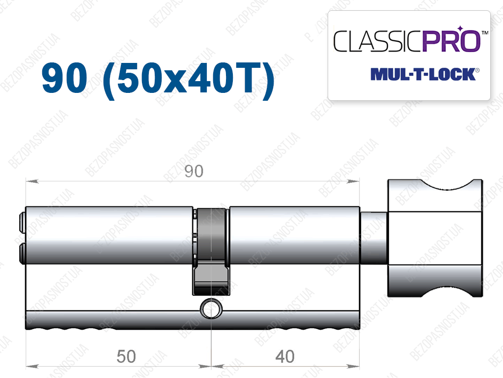 Циліндр Mul-T-Lock Classic Pro ключ-тумблер 90 мм (50x40T)