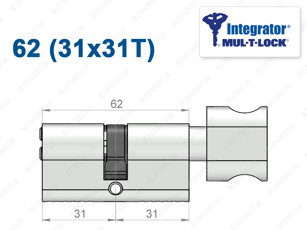 Цилиндр Mul-T-Lock Integrator ключ-тумблер 62 мм (31x31T)