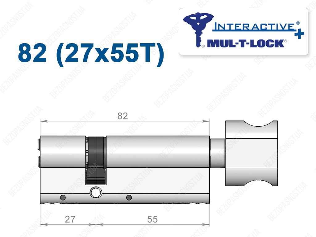 Циліндр Mul-T-Lock Interactive+ з тумблером 82 мм (27x55T)