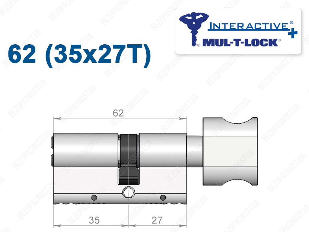 Циліндр Mul-T-Lock Interactive+ з тумблером 62 мм (35x27T)