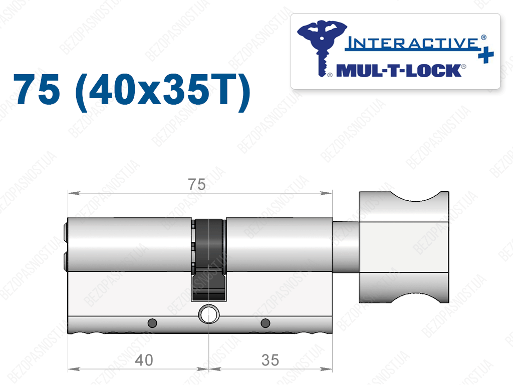 Циліндр Mul-T-Lock Interactive+ з тумблером 75 мм (40x35T)