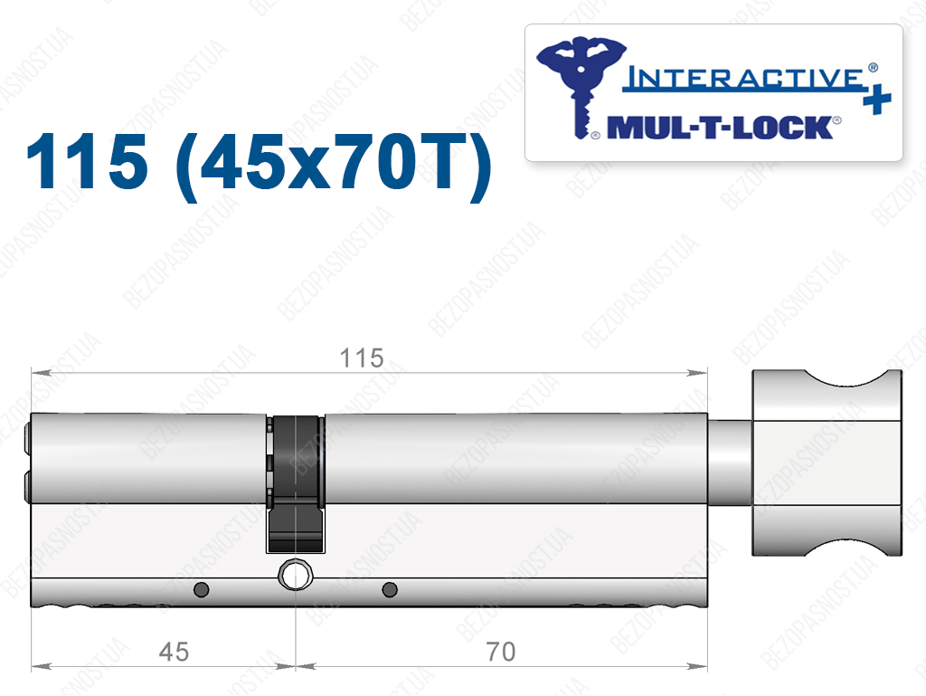 Цилиндр Mul-T-Lock Interactive+ с тумблером 115 мм (45x70T)