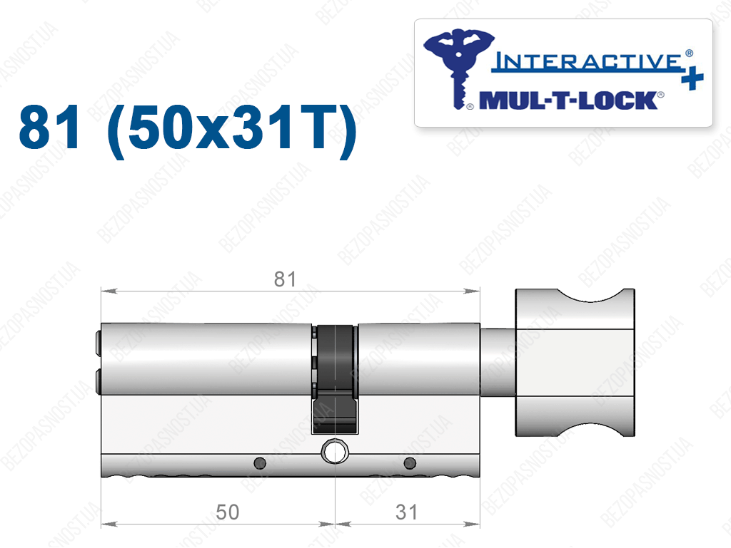 Циліндр Mul-T-Lock Interactive+ з тумблером 81 мм (50x31T)