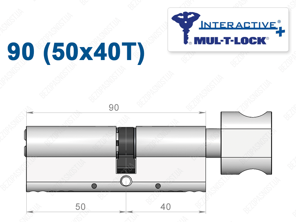 Циліндр Mul-T-Lock Interactive+ з тумблером 90 мм (50x40T)