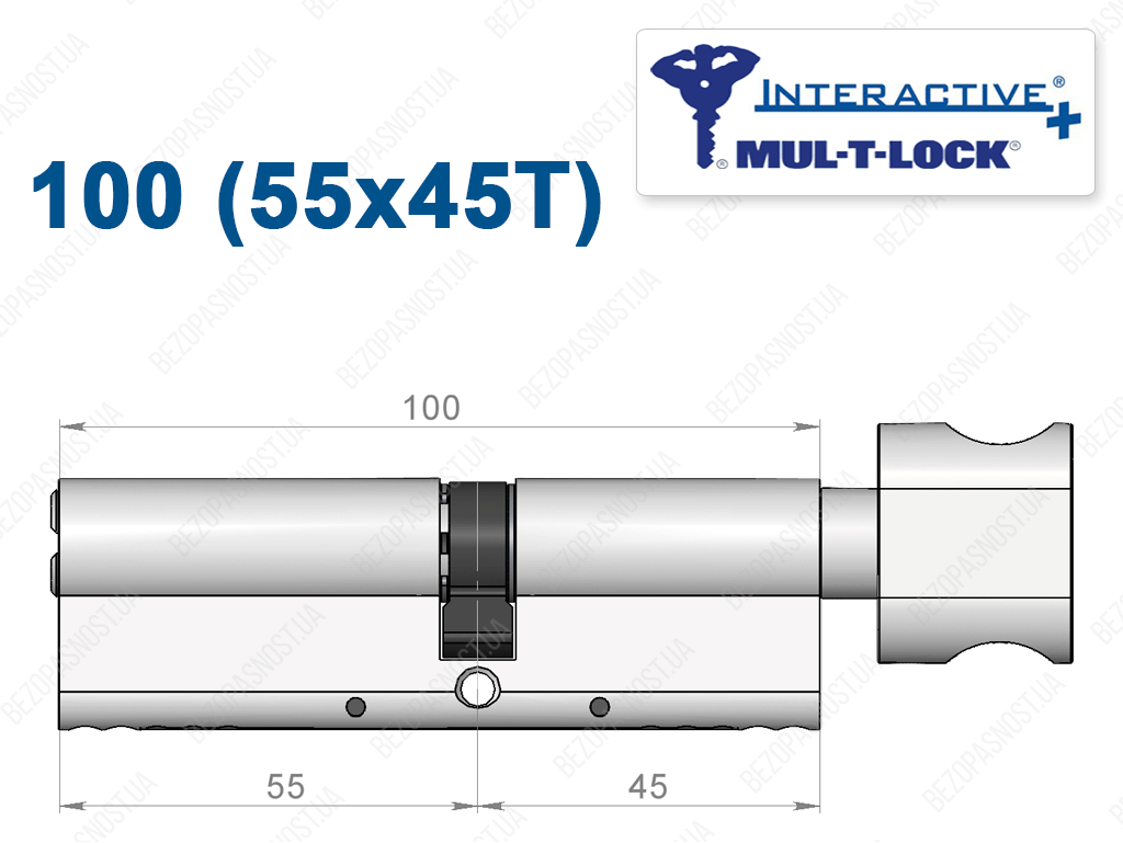 Циліндр Mul-T-Lock Interactive+ з тумблером 100 мм (55x45T)