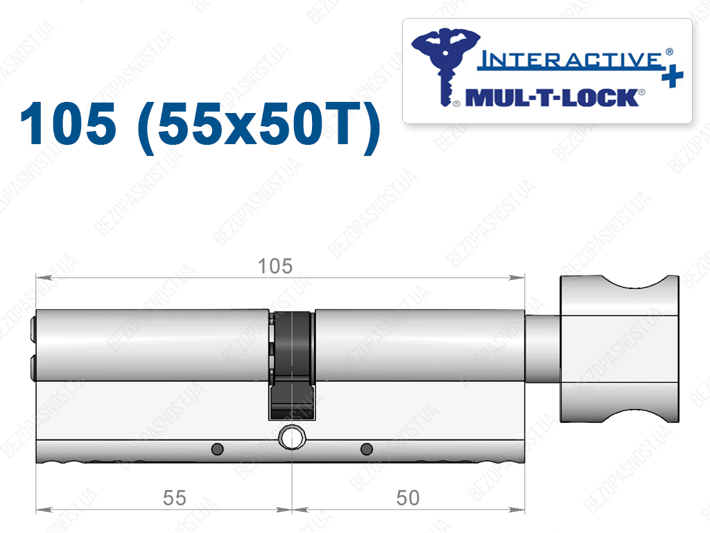 Цилиндр Mul-T-Lock Interactive+ с тумблером 105 мм (55x50T)