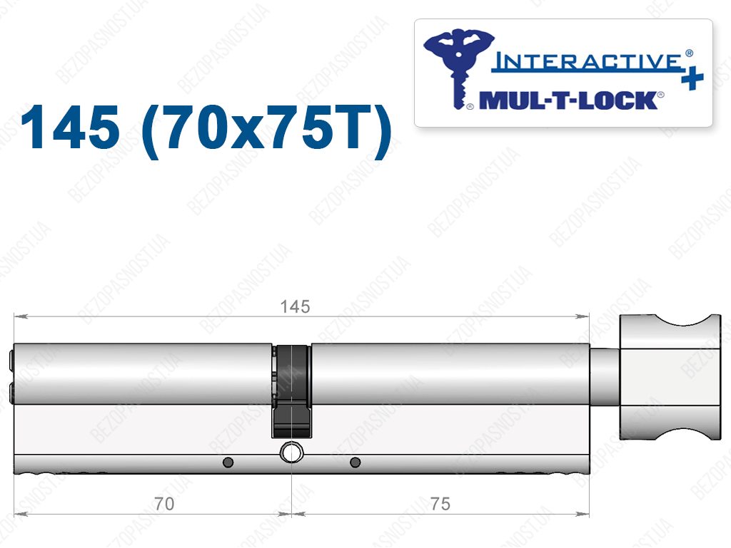 Цилиндр Mul-T-Lock Interactive+ с тумблером 145 мм (70x75T)