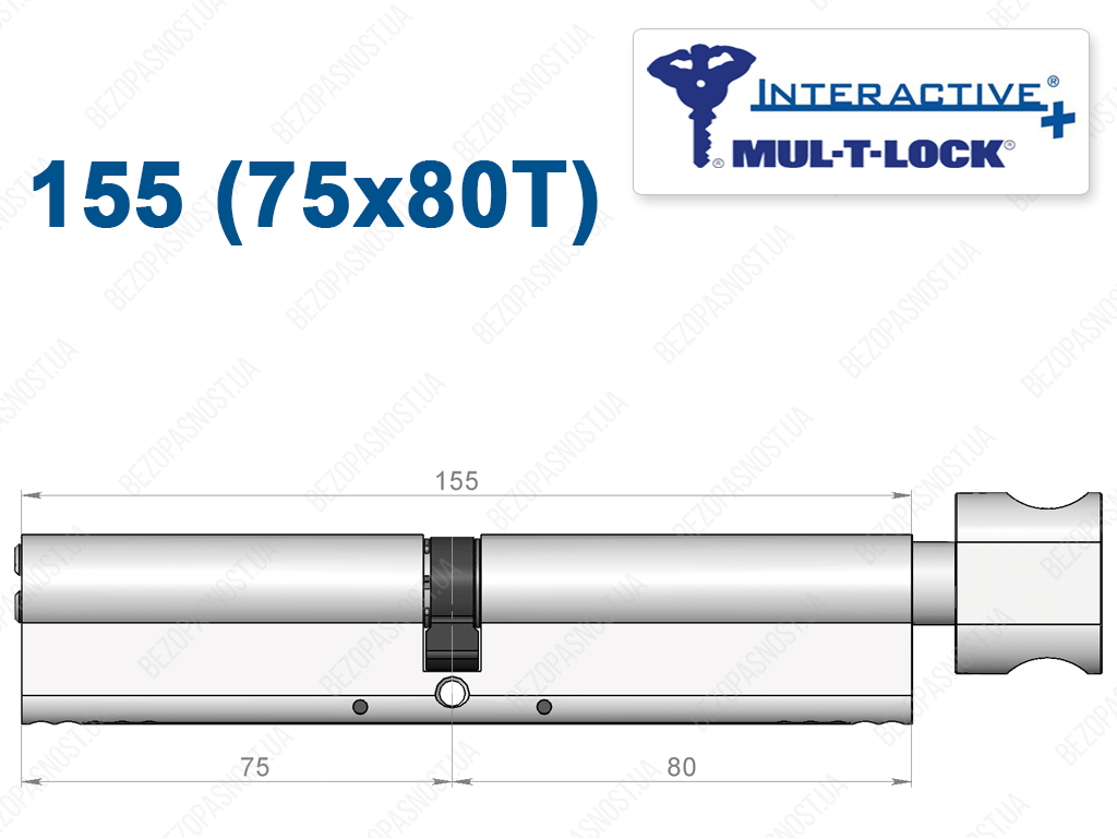 Цилиндр Mul-T-Lock Interactive+ с тумблером 155 мм (75x80T)