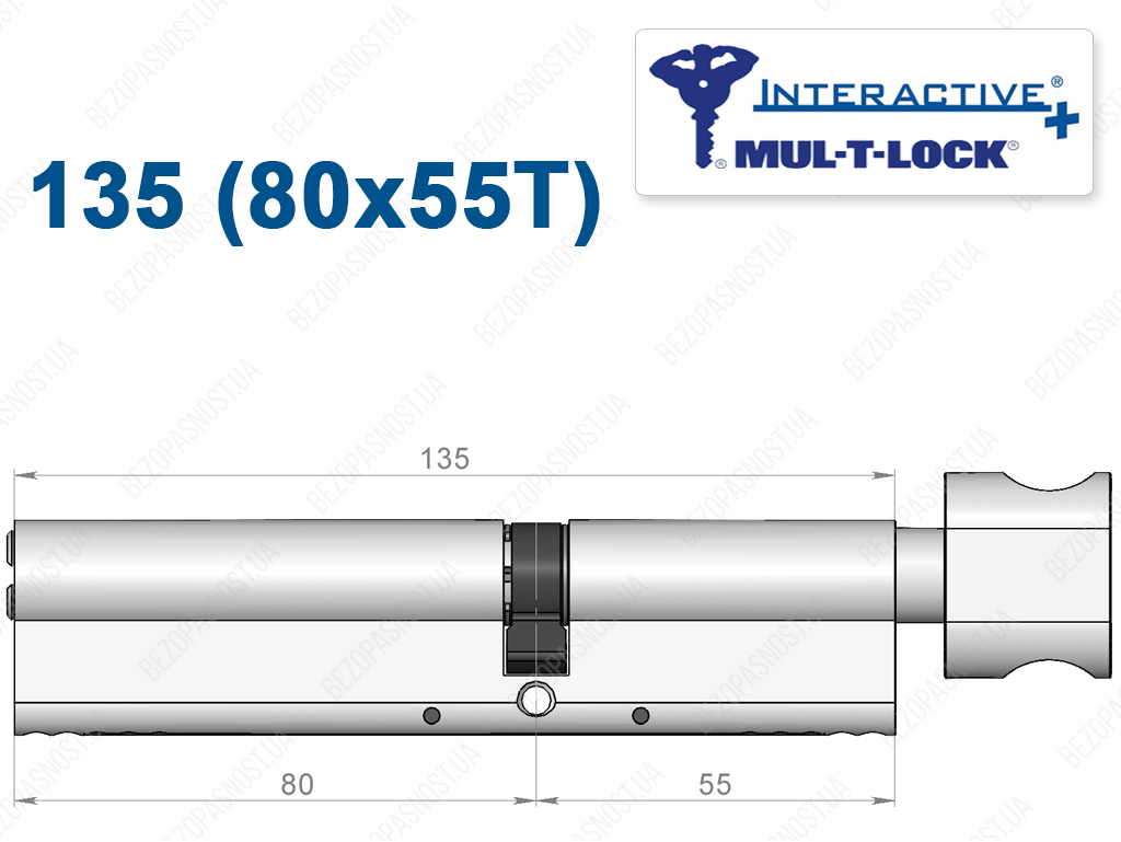 Циліндр Mul-T-Lock Interactive+ з тумблером 135 мм (80x55T)