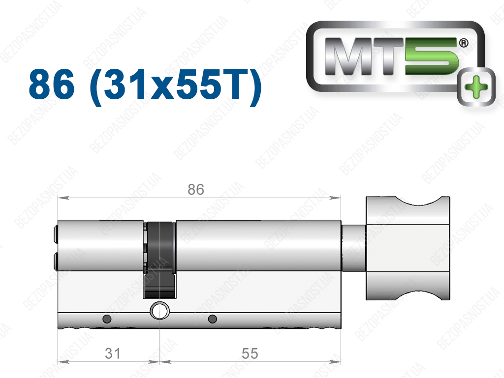 Цилиндр Mul-T-Lock MT5+ с тумблером 86 мм (31x55T)