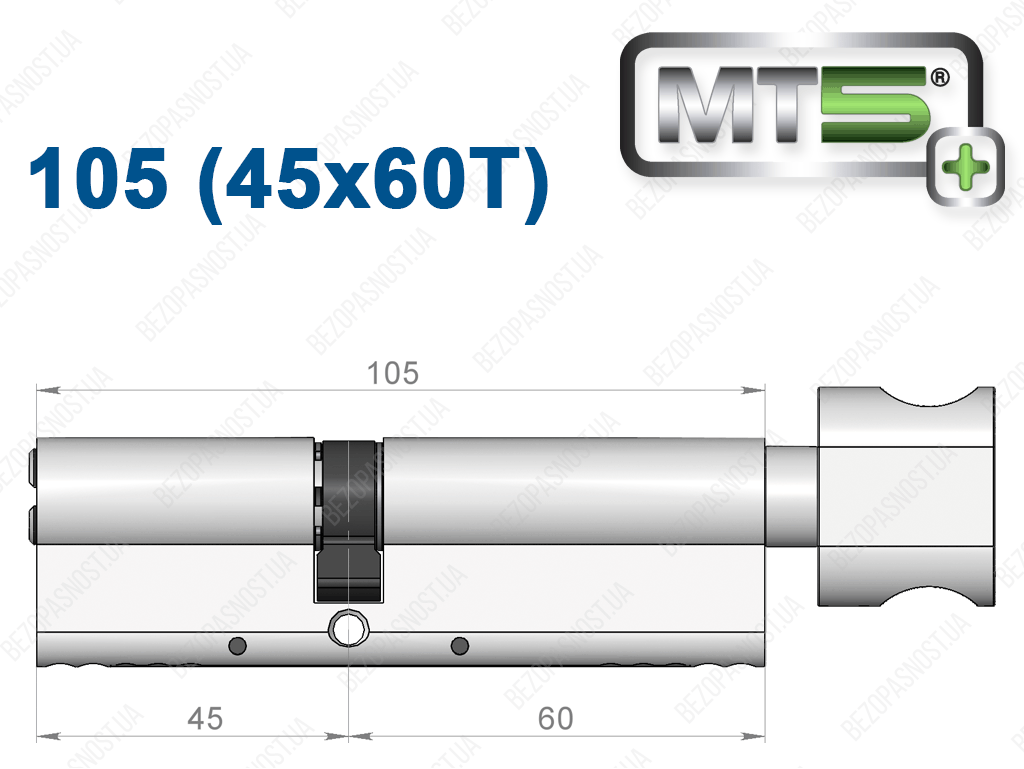 Цилиндры МТ5+ поставляются в Украину только в корпусе цвета матовый никель. Тумблер цилиндра может быть любого цвета (может потребоваться доплата, см. опции). Он фиксируется винтом М4 с внутренним шестигранником на штоке диаметром 8 мм.