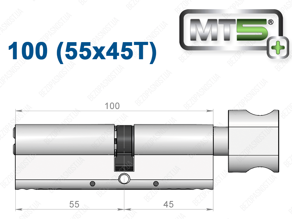 Цилиндры МТ5+ поставляются в Украину только в корпусе цвета матовый никель. Тумблер цилиндра может быть любого цвета (может потребоваться доплата, см. опции). Он фиксируется винтом М4 с внутренним шестигранником на штоке диаметром 8 мм.