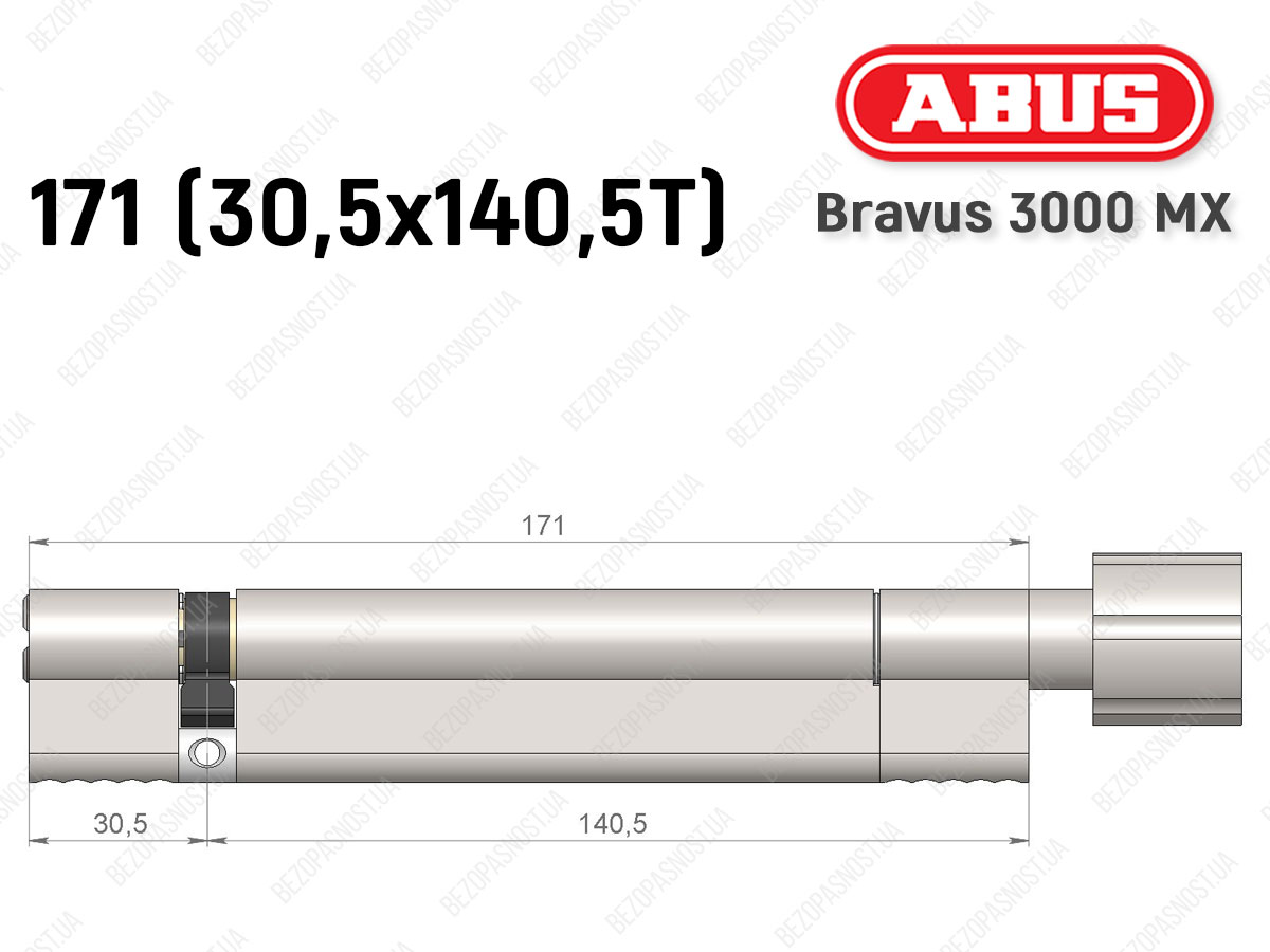 Цилиндр ABUS BRAVUS 3000 MX, ключ-тумблер, 170 мм (140х30T)