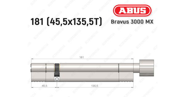 Цилиндр ABUS BRAVUS 3000 MX, ключ-тумблер, 180 мм (45х135T)