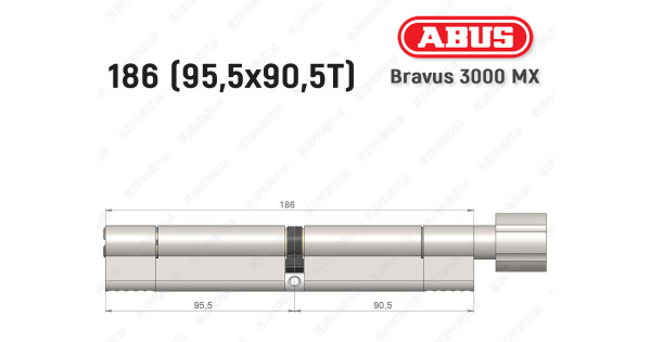 Цилиндр ABUS BRAVUS 3000 MX, ключ-тумблер, 185 мм (95х90T)