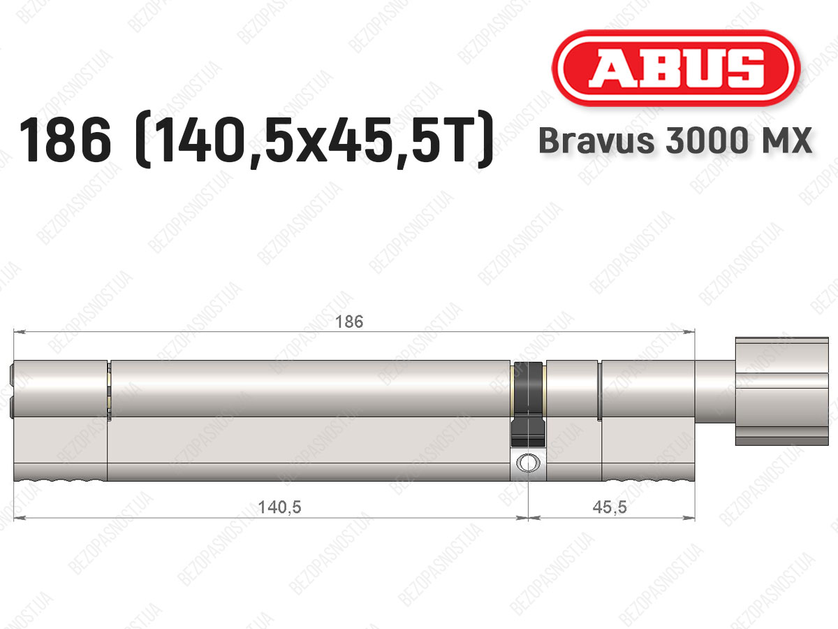 Цилиндр ABUS BRAVUS 3000 MX, ключ-тумблер, 185 мм (140х45T)