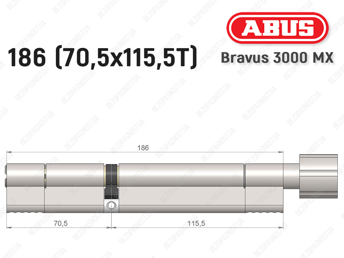 Цилиндр ABUS BRAVUS 3000 MX, ключ-тумблер, 185 мм (70х115T)
