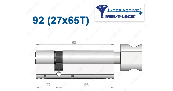 Цилиндр Mul-T-Lock Interactive+ с тумблером 92 мм (27x65T)