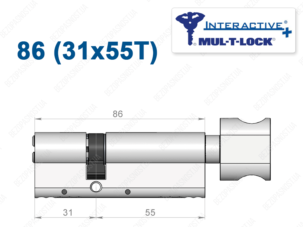 Цилиндр Mul-T-Lock Interactive+ с тумблером 86 мм (31x55T)