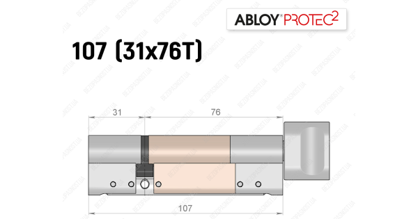 Циліндр ABLOY PROTEC-2 107 мм (31x76T), з тумблером